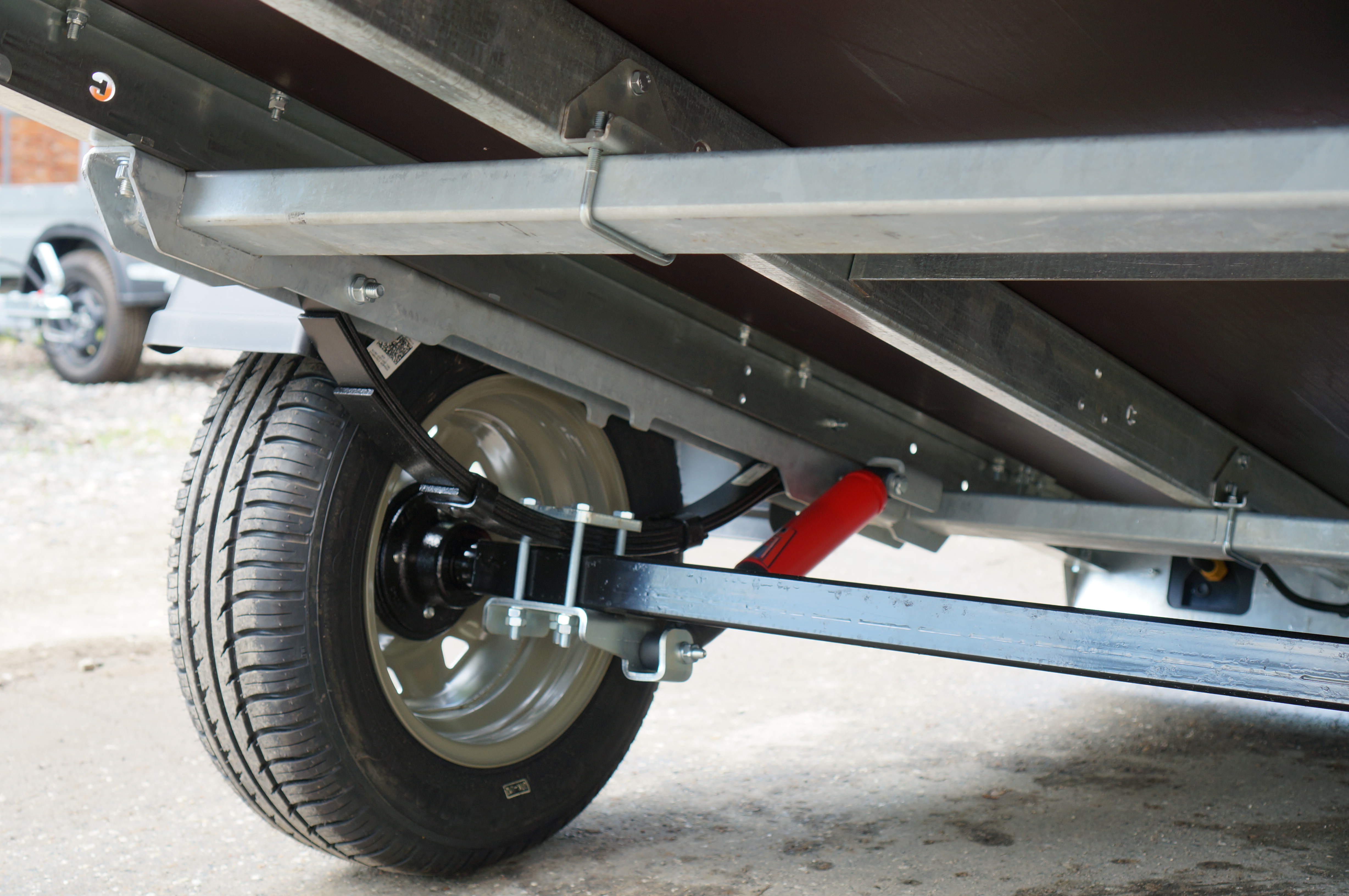 - ось. Оси изготовлены из толстостенной трубы с применением роботизированной сварки. Профиль трубы 50×50 мм, толщина 4 мм. Устойчива к скручиванию и изгибу. Ступица не нуждается в техническом обслуживании. Подшипник компактный, двухрядный, шариковый с наклонными дорожками. Смазан специальной смазкой с водоотталкивающими добавками. Подшипник закрытого типа дополнительно защищен от внешней среды стальным колпачком.