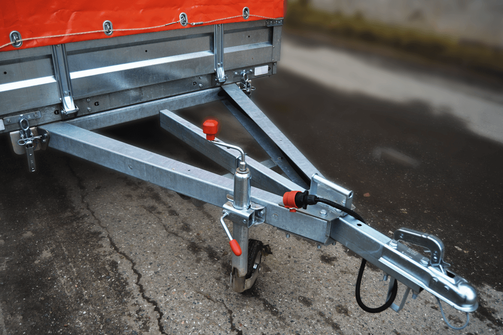 А-образное дышло оборудовано удлинителем дышла 600мм, замковым устройством со страховочным тросиком и держателем штекера. Замковое устройство с индикатором износа, предназначено для шара ТСУ d=50 мм.