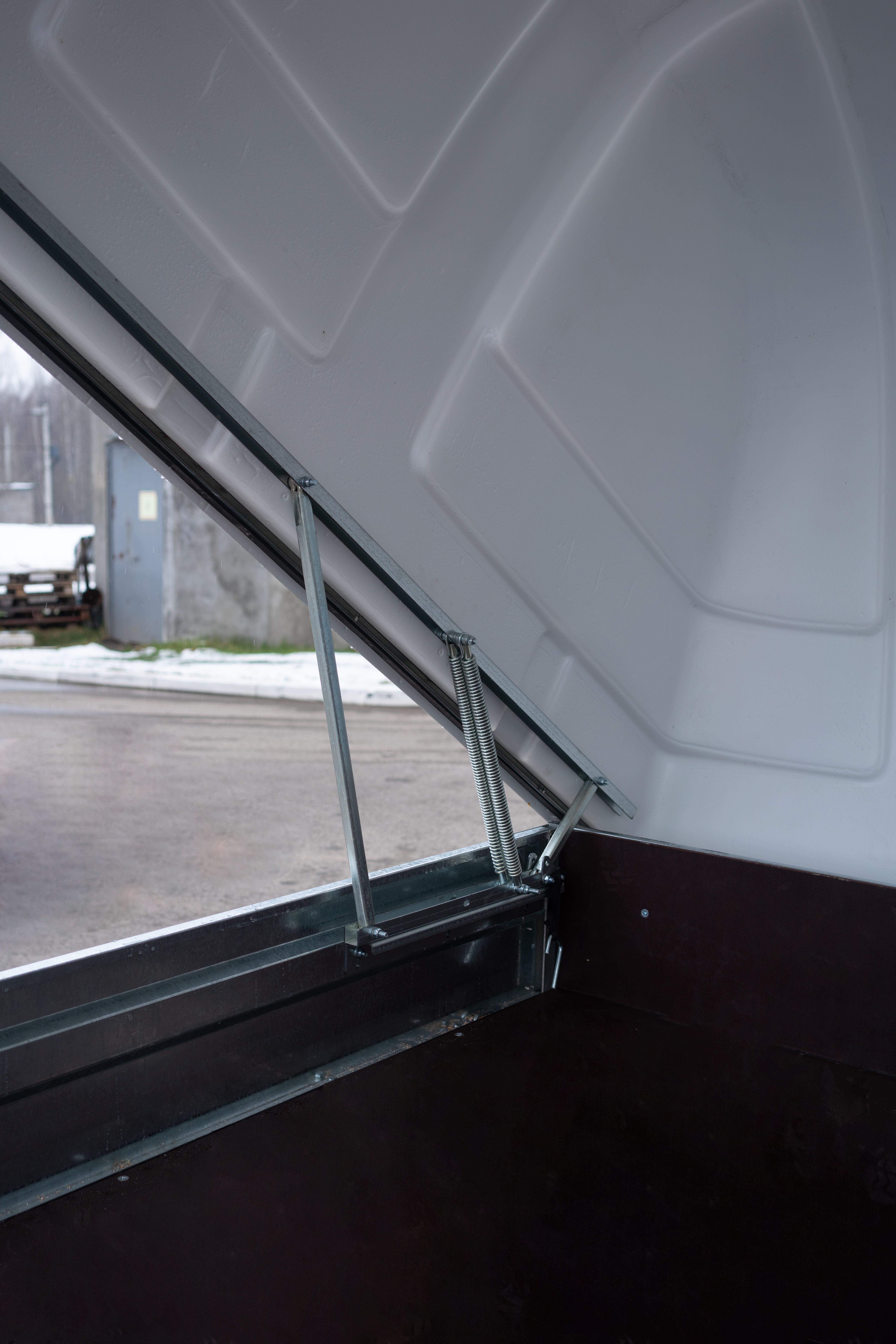 Используется только с пластиковой крышкой либо без нее, не предусмотрена комплектация прицепа тентом и каркасом. При необходимости фиксации в самосвальном режиме рекомендуется использование двух газовых упоров (приобретаются дополнительно).